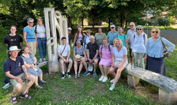Das Grenzland-Zupforchester mit Partnern vor der Landesakademie für musisch-kulturelle Bildung in Ottweiler